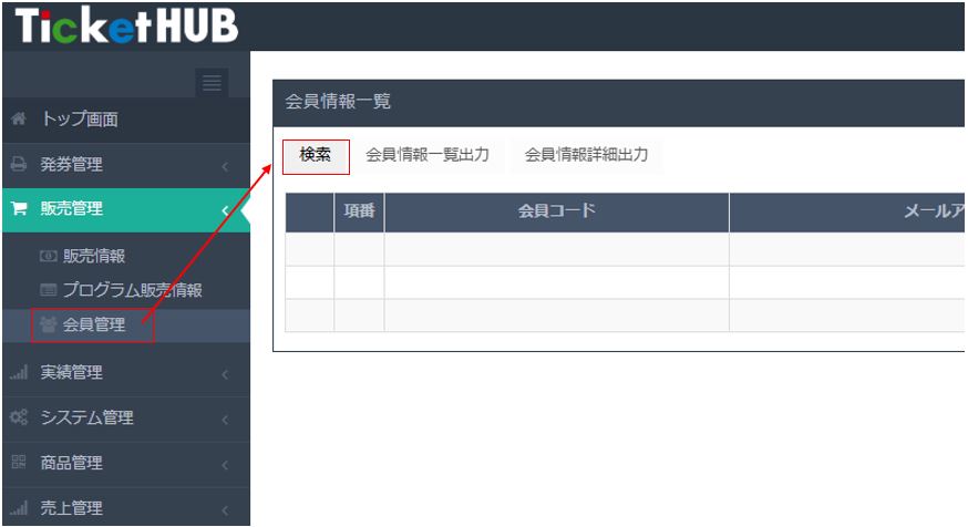1.チケットHUB管理サイトメニュー > 販売管理 > 会員管理