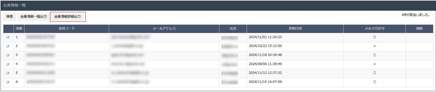 1.検索結果画面より【会員情報詳細出力】を押下
