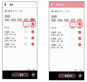 着券・着券取消画面に「すべて選択」チェックボックスが追加されました(2023年6月28日)
